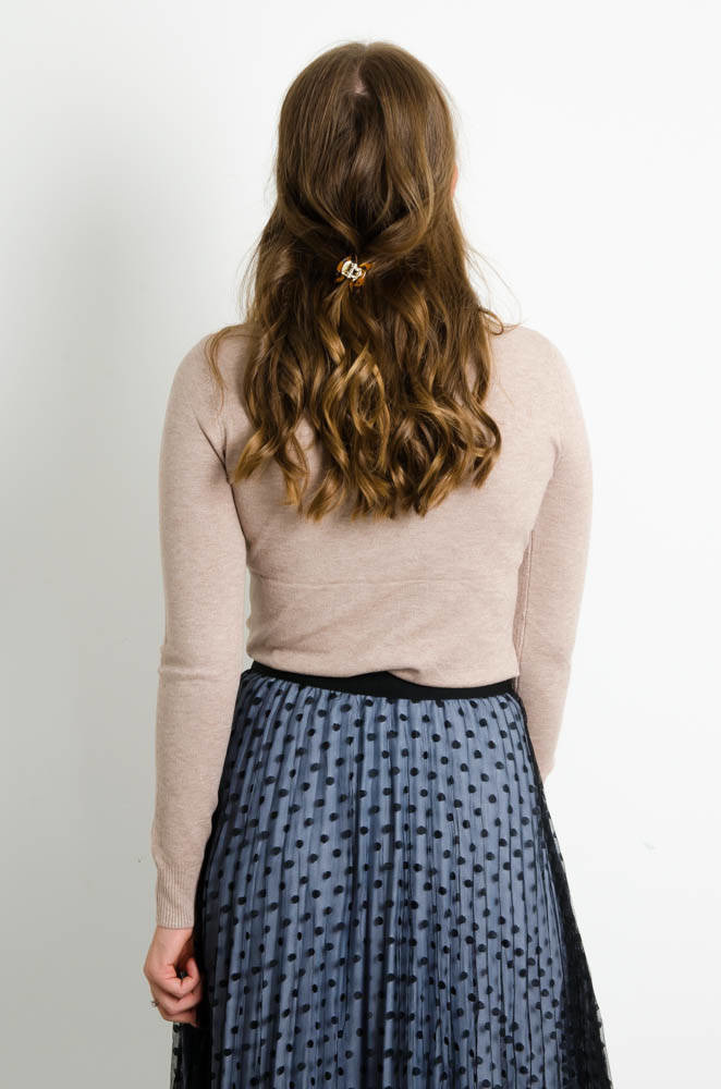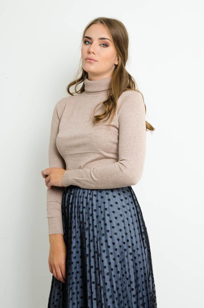BEŻOWY GŁADKI GOLF Z PRĄŻKOWANYM ZAKOŃCZENIEM
