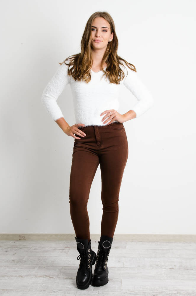 BIAŁY WŁOCHATY SWETEREK Z DEKOLTEM W SEREK