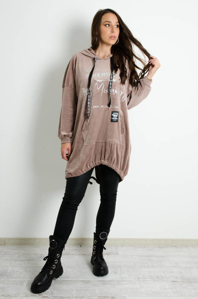 BRĄZOWA ASYMETRYCZNA TUNIKA Z NAPISEM