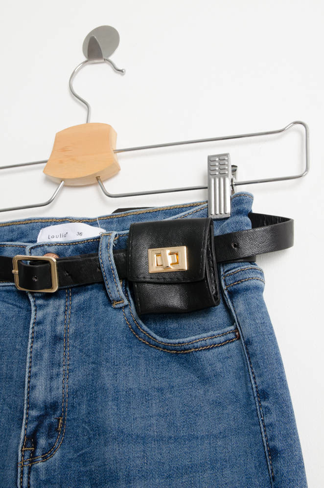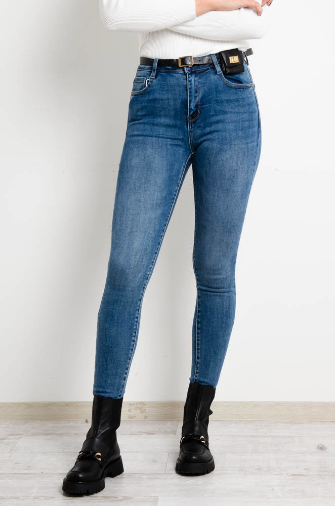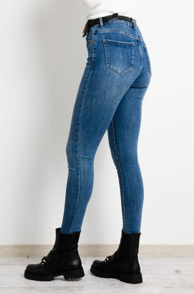Jeansy z funkcją stretchu, który trzyma i modeluje talię, uda i pośladki oraz zachowuje kształt jeansów. Wysoki stan, rozporek na suwak i guzik. Obcisłe nogawki. Pasek z nerką w zestawie.