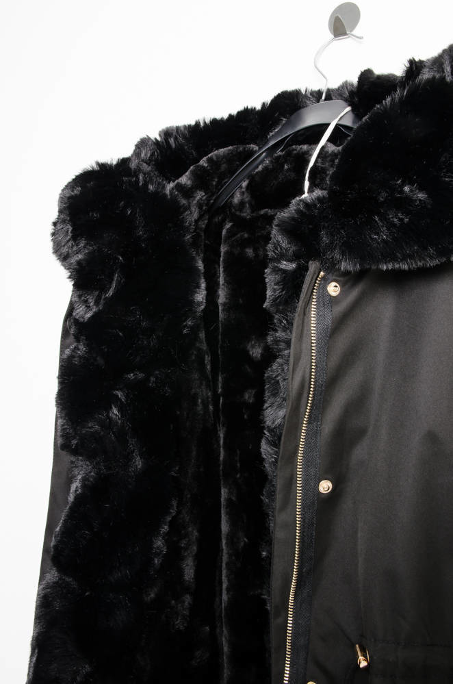 CZARNA KURTKA PARKA ZIMOWA Z ODPINANYM FUTERKIEM