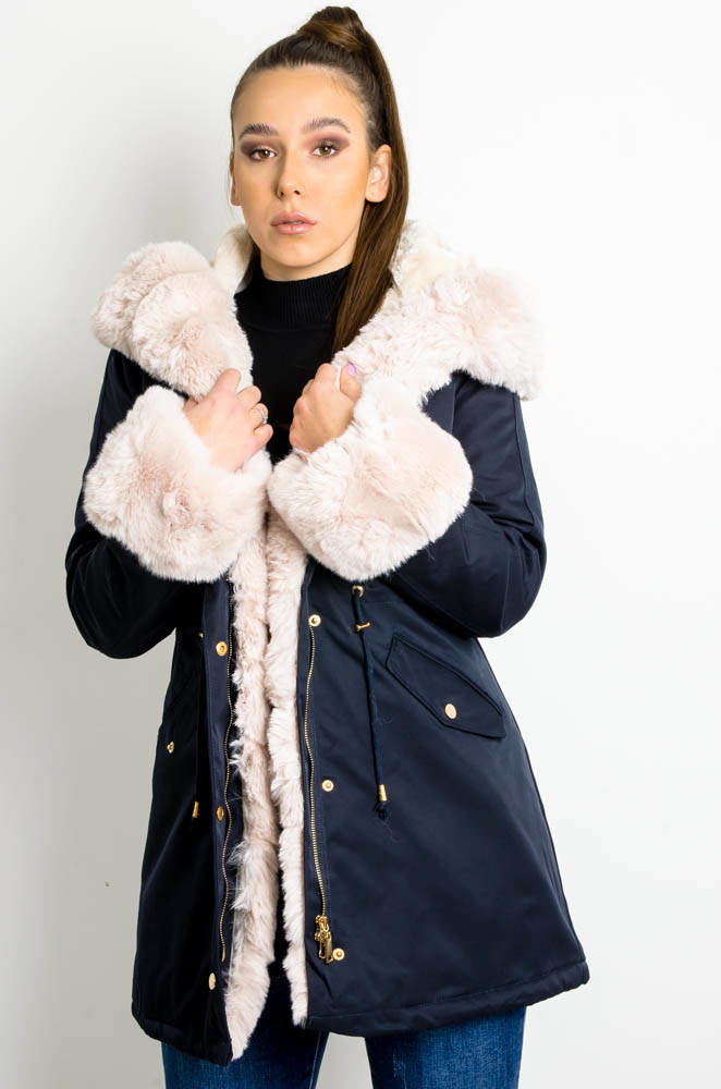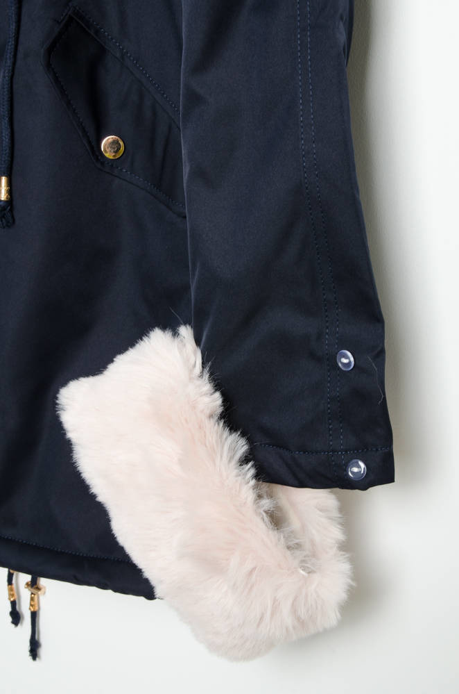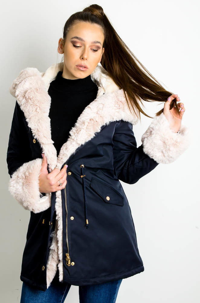 GRANATOWA KURTKA PARKA ZIMOWA Z ODPINANYM FUTERKIEM