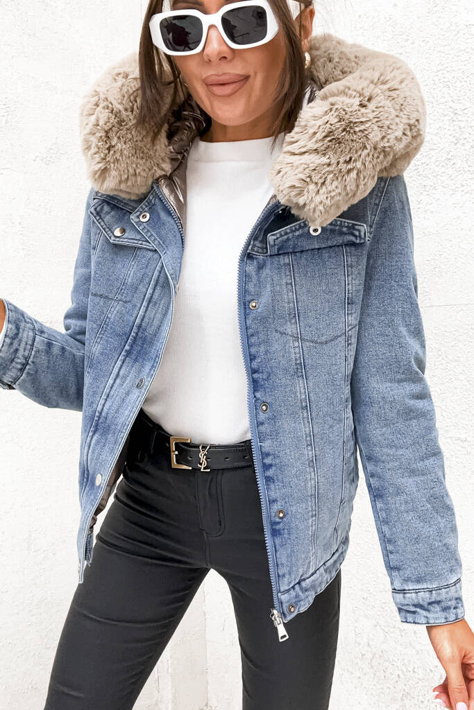 DWUSTRONNA ZŁOTO-JEANSOWA KURTKA Z FUTERKIEM