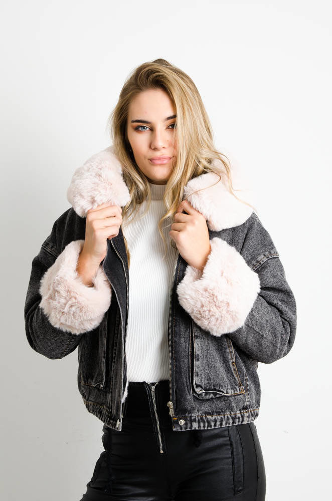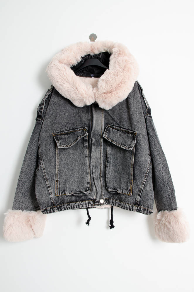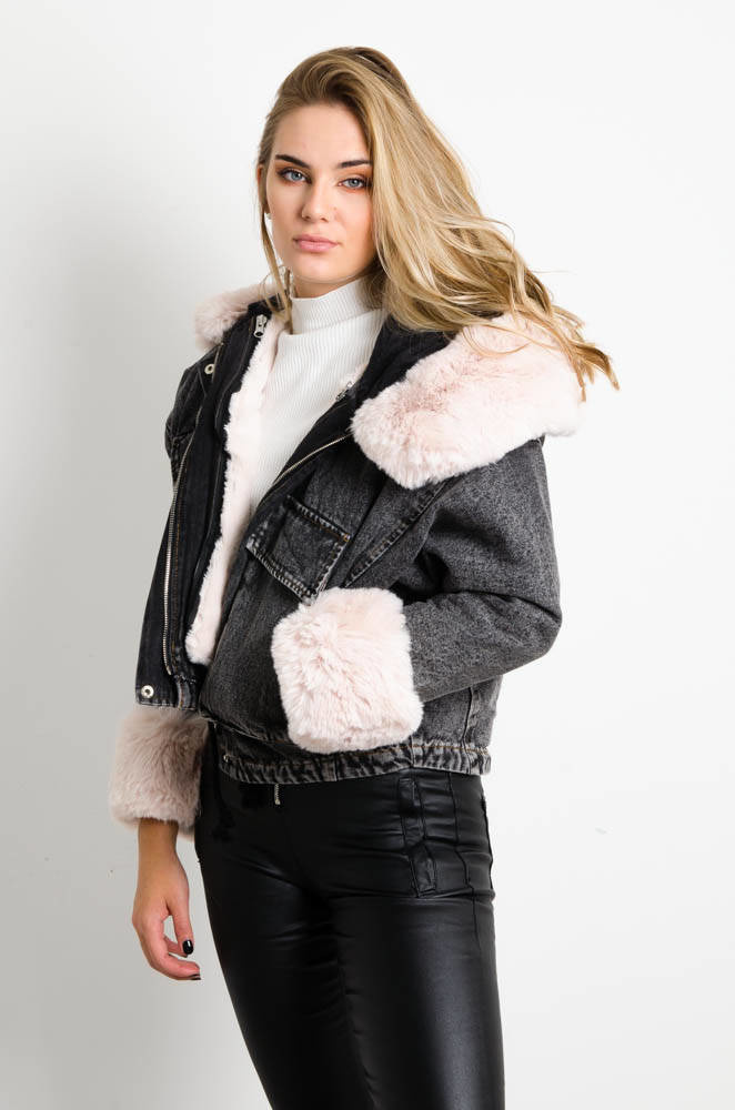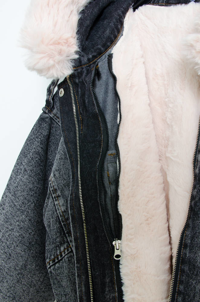 CZARNA JEANSOWA KURTKA Z ODPINANYM FUTERKIEM