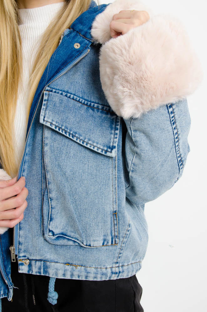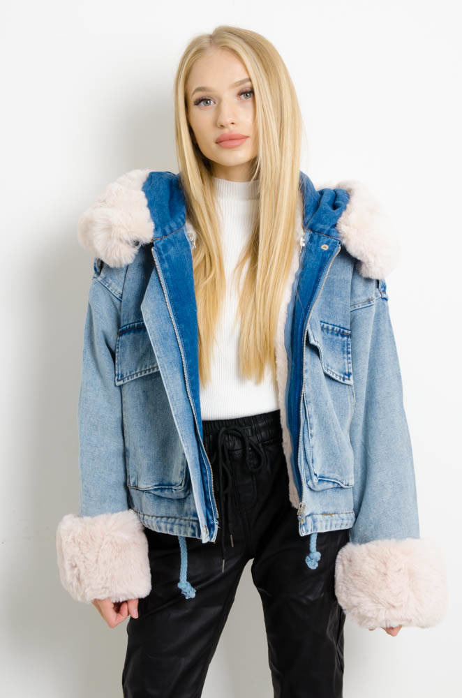 NIEBIESKA JEANSOWA KURTKA Z ODPINANYM FUTERKIEM