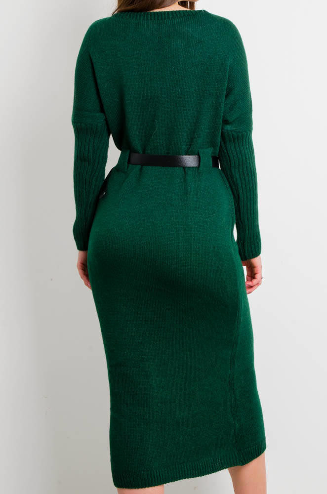 DŁUGA SUKIENKA SWETERKOWA Z PASKIEM