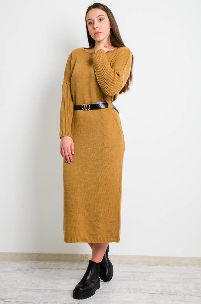 DŁUGA SUKIENKA SWETERKOWA Z PASKIEM