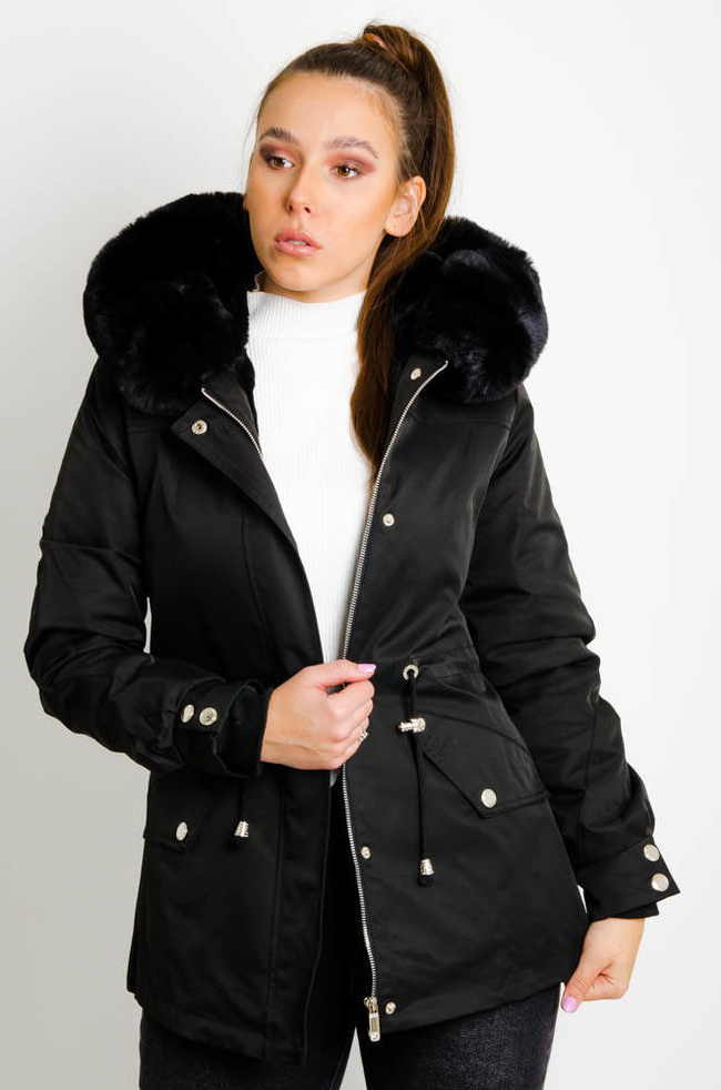 CZARNA JESIENNO-ZIMOWA KURTKA PARKA NA MISIU