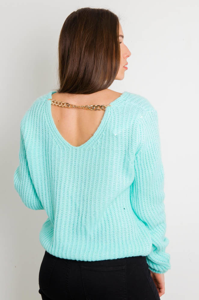 TURKUSOWY SWETER Z ŁAŃCUSZKIEM