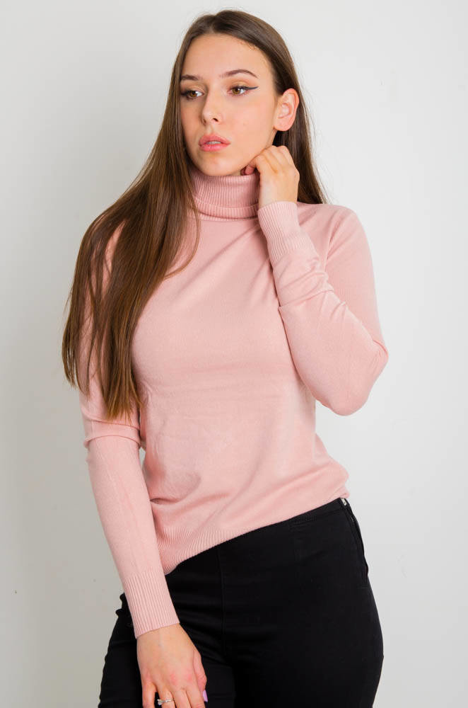 RÓŻOWY GŁADKI GOLF Z PRĄŻKOWANYM ZAKOŃCZENIEM