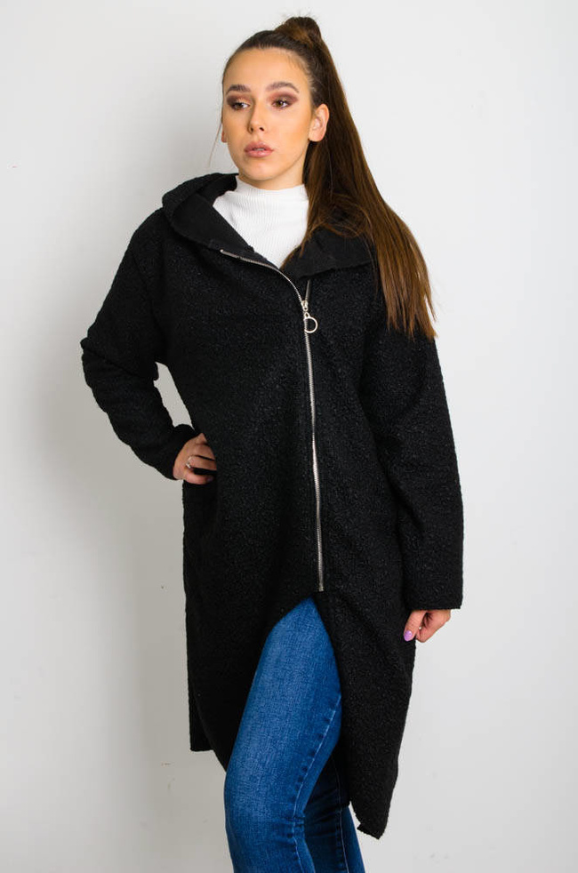 CZARNY MELANŻOWY PŁASZCZ Z WYCIĘCIEM