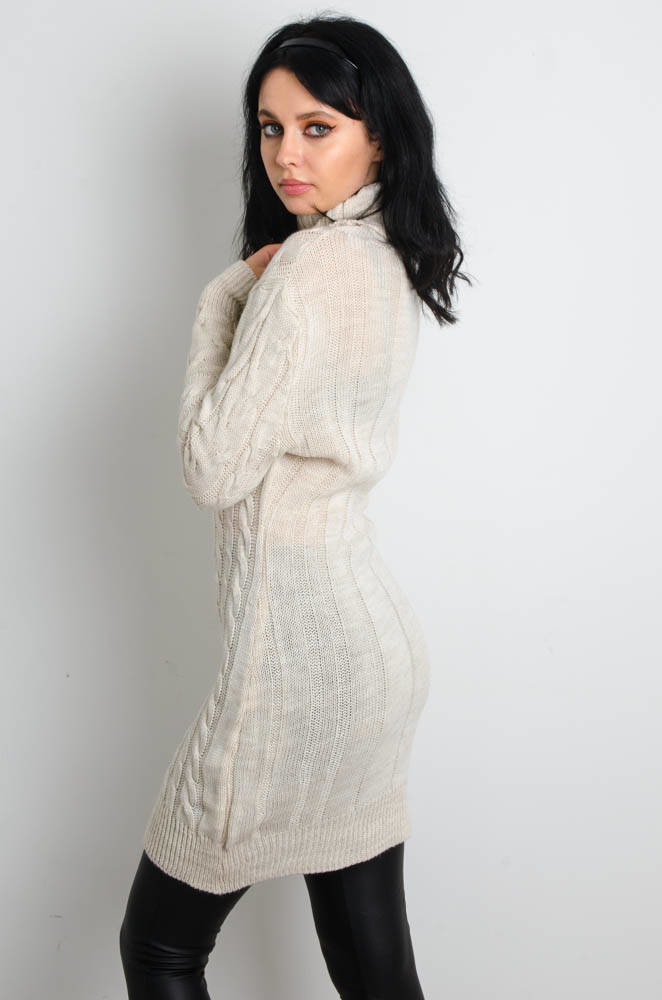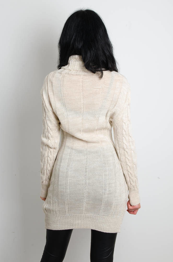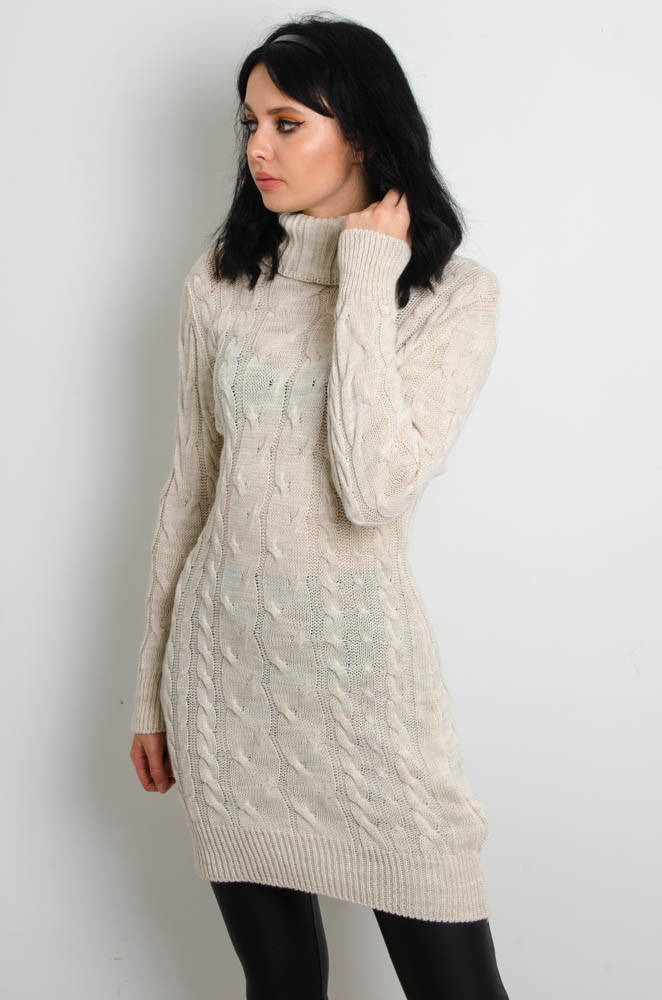 BEŻOWA SWETERKOWA SUKIENKA Z GOLFEM