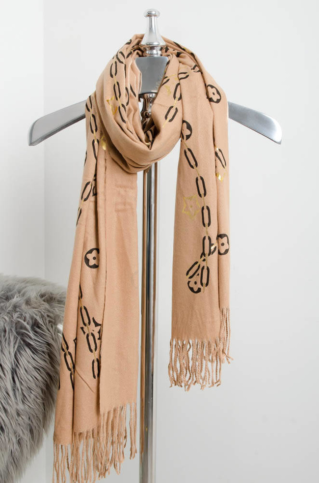 BEŻOWY SZAL ZE ZŁOTYM ZDOBIENIEM