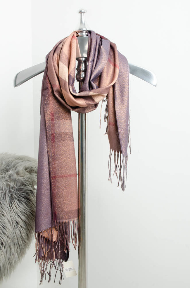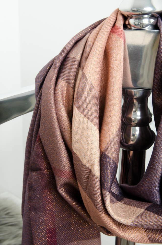 BRĄZOWY SZAL W KRATĘ ZE ZŁOTĄ NICIĄ
