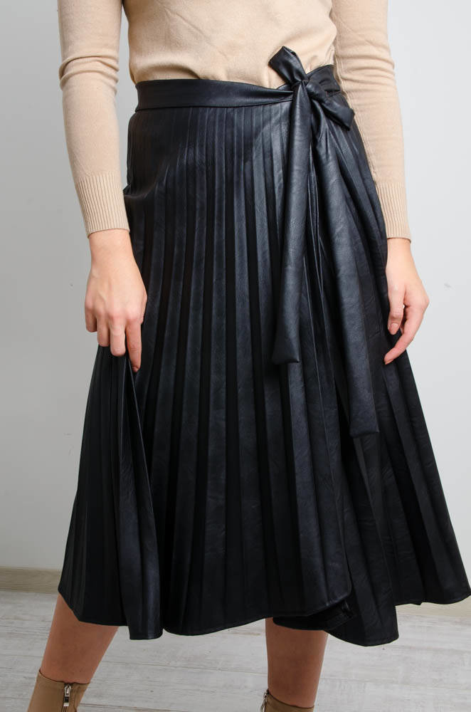 CZARNA PLISOWANA SPÓDNICA Z EKO SKÓRY -REGULOWANA