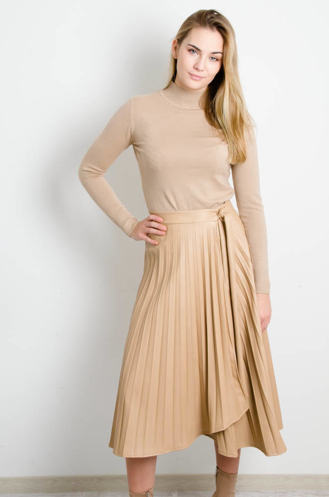 BEŻOWA PLISOWANA SPÓDNICA Z EKO SKÓRY