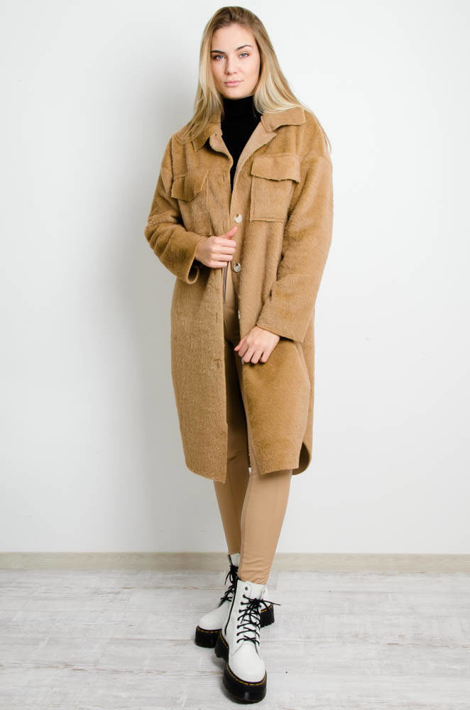 BRĄZOWY PŁASZCZ ALPAKA Z KIESZONKAMI