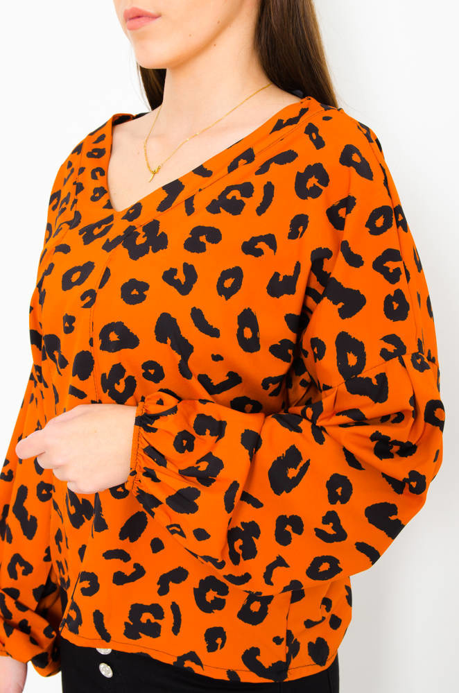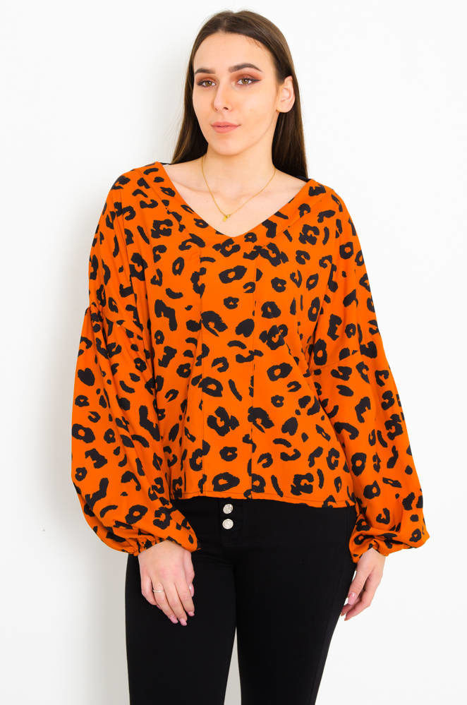 POMARAŃCZOWA BLUZKA W CĘTKI Z DEKOLTEM W SZPIC