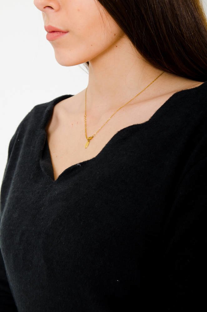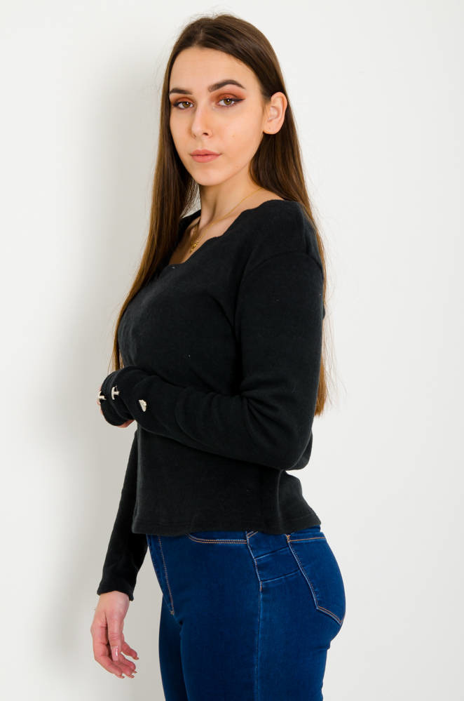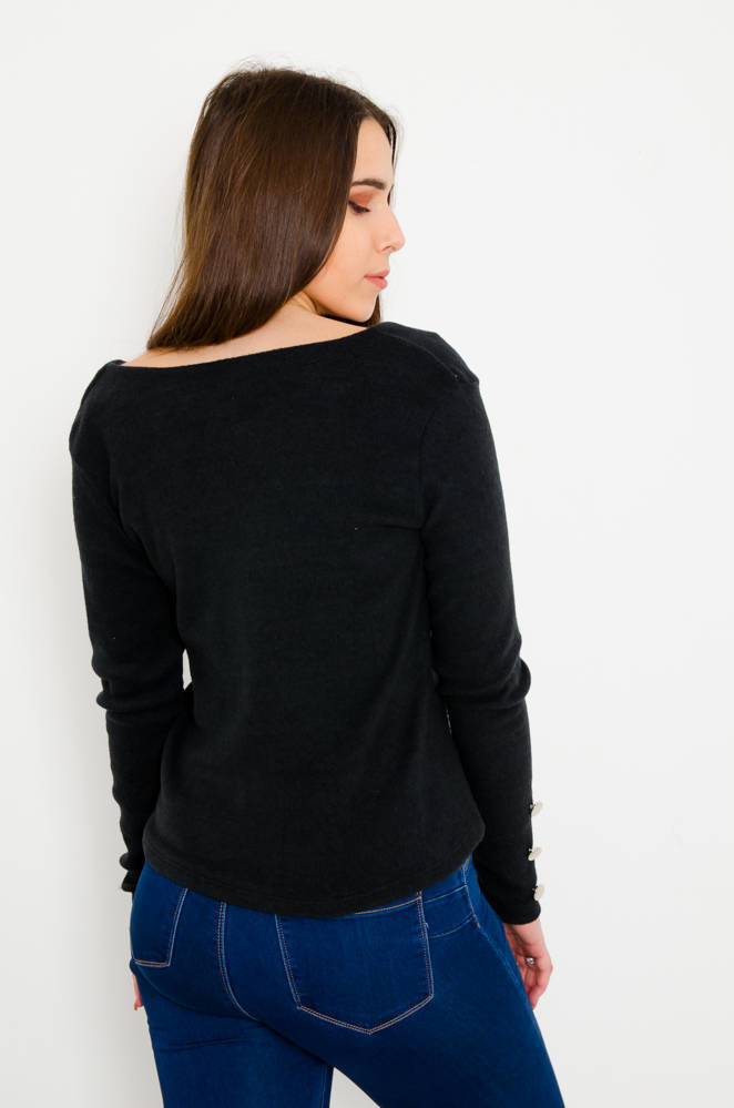 CZARNA BLUZKA Z OZDOBNYM DEKOLTEM I GUZIKAMI