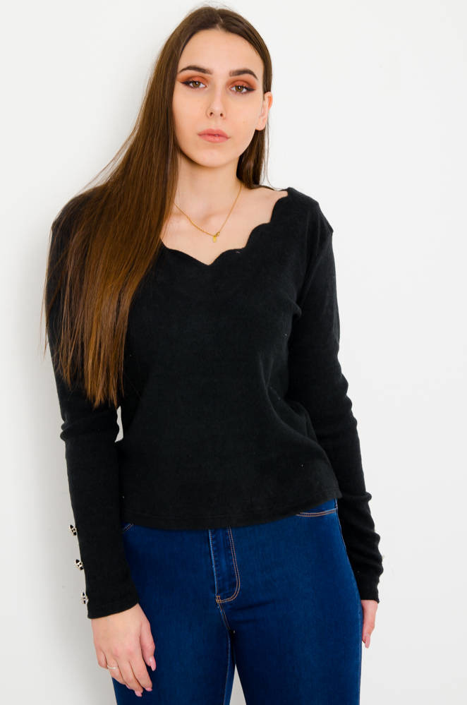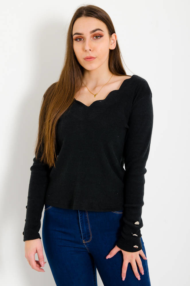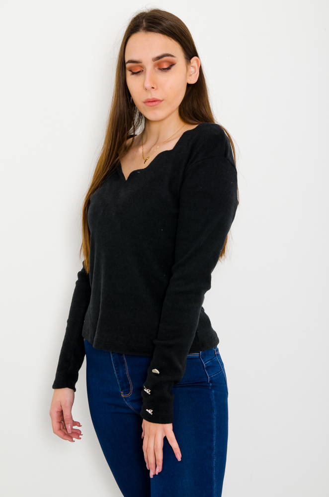 CZARNA BLUZKA Z OZDOBNYM DEKOLTEM I GUZIKAMI