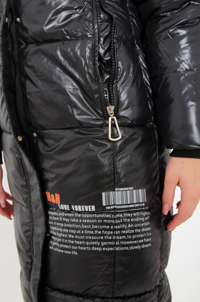 CZARNA DŁUGA KURTKA ZIMOWA Z NAPISAMI