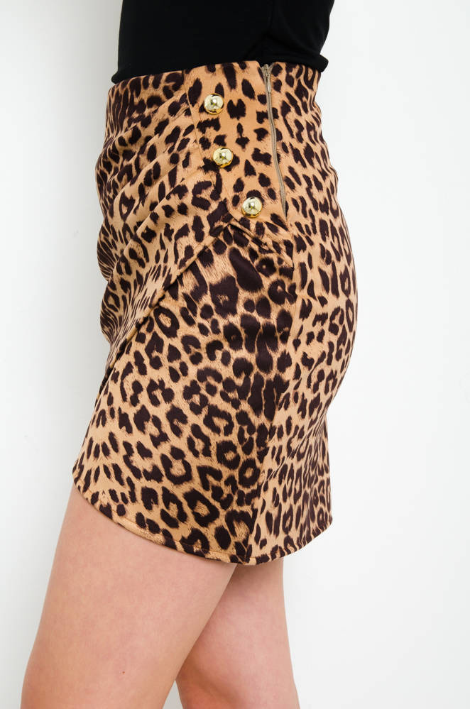 OŁÓWKOWA SPÓDNICA W PANTERKĘ Z OZDOBNYMI GUZIKAMI I ZAKŁADKĄ