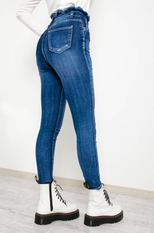 JEANSOWE PRZYLEGAJĄCE SPODNIE Z GUZIKAMI- WYSOKI STAN