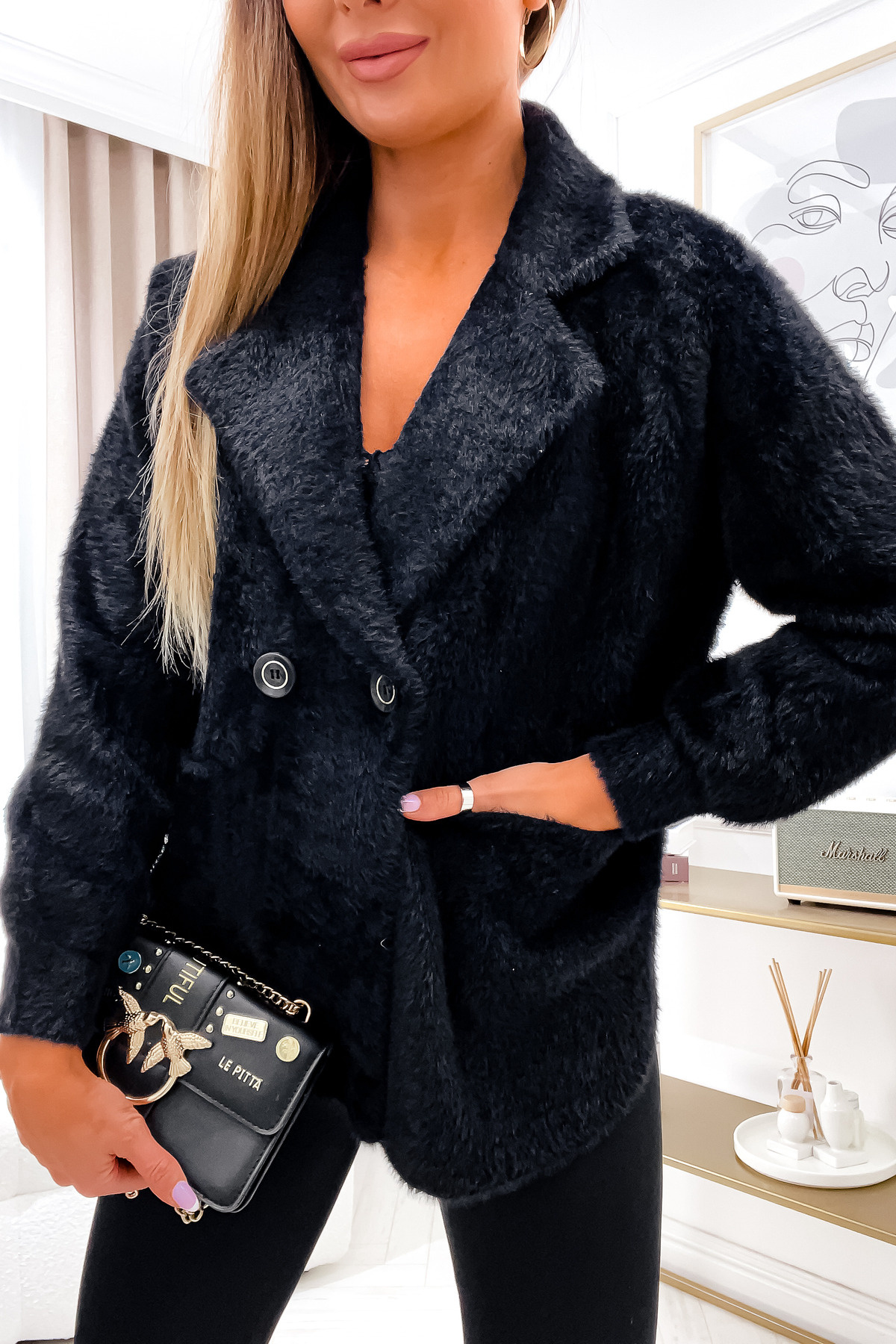 KURTKA WEŁNIANA ALPAKA KRÓTKA- CZARNA