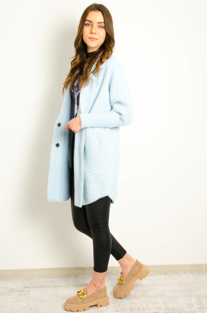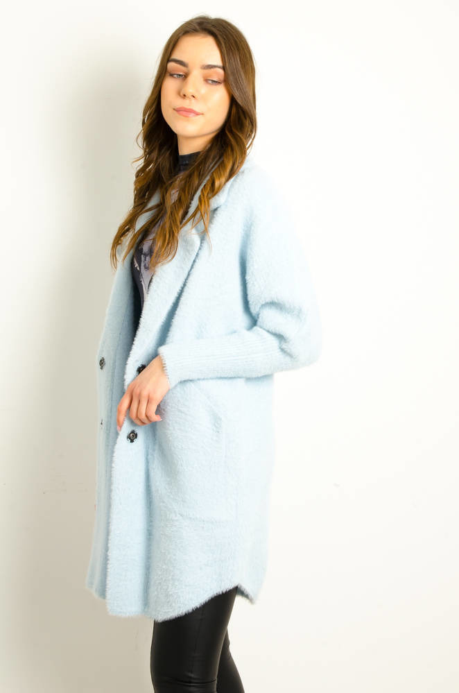 PŁASZCZ DŁUGI WEŁNIANY ALPAKA- JASNO-NIEBIESKI