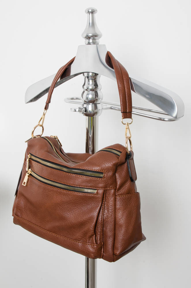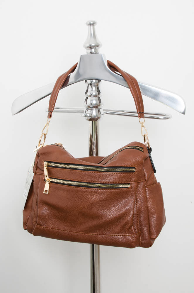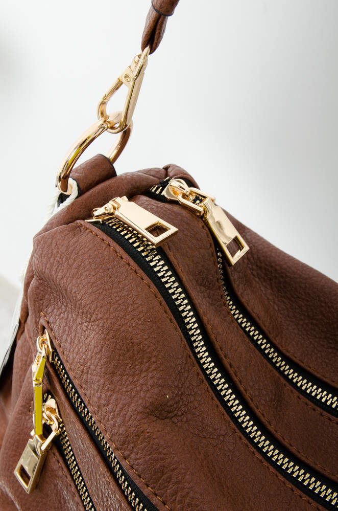 BRĄZOWA TOREBKA TYPU SHOPPER Z OZDOBNYMI ZAMKAMI