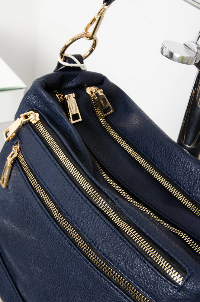 GRANATOWA TOREBKA TYPU SHOPPER Z OZDOBNYMI ZAMKAMI