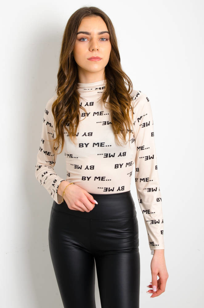 BEŻOWE SATYNOWE BODY Z NAPISAMI  -BY ME