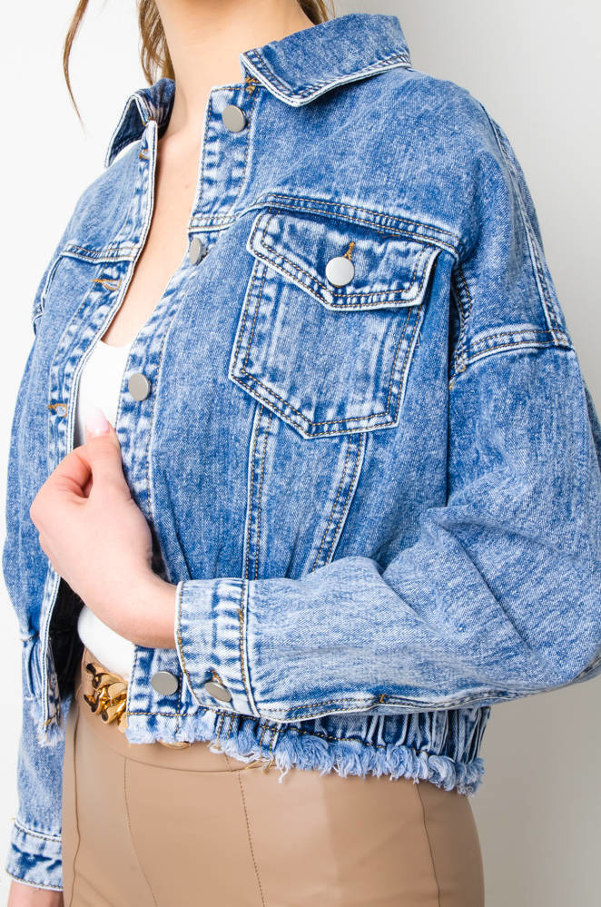 KURTKA JEANSOWA BOMBERKA Z KOŁNIERZEM