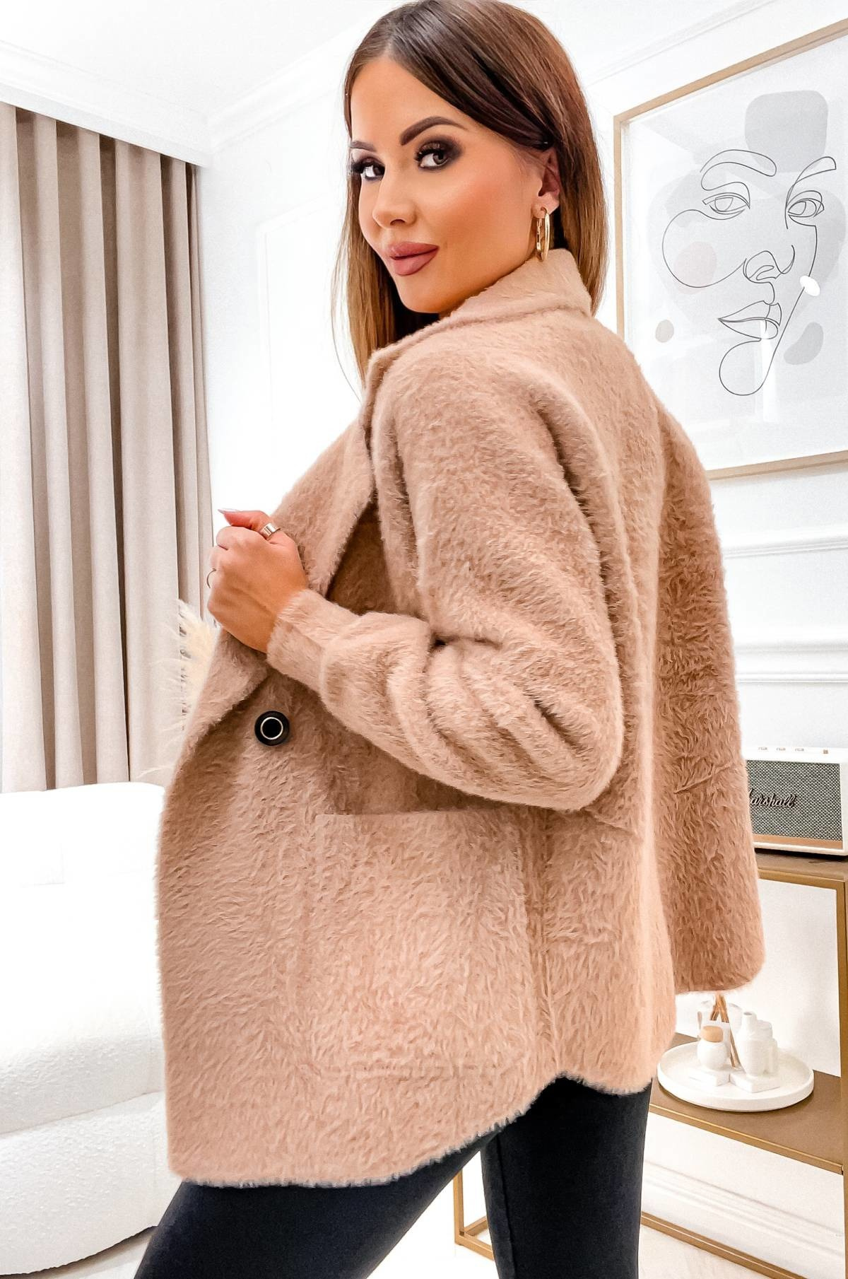 KURTKA WEŁNIANA ALPAKA KRÓTKA- BRĄZOWA