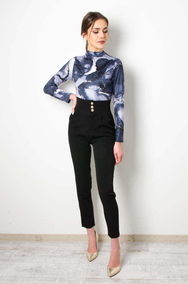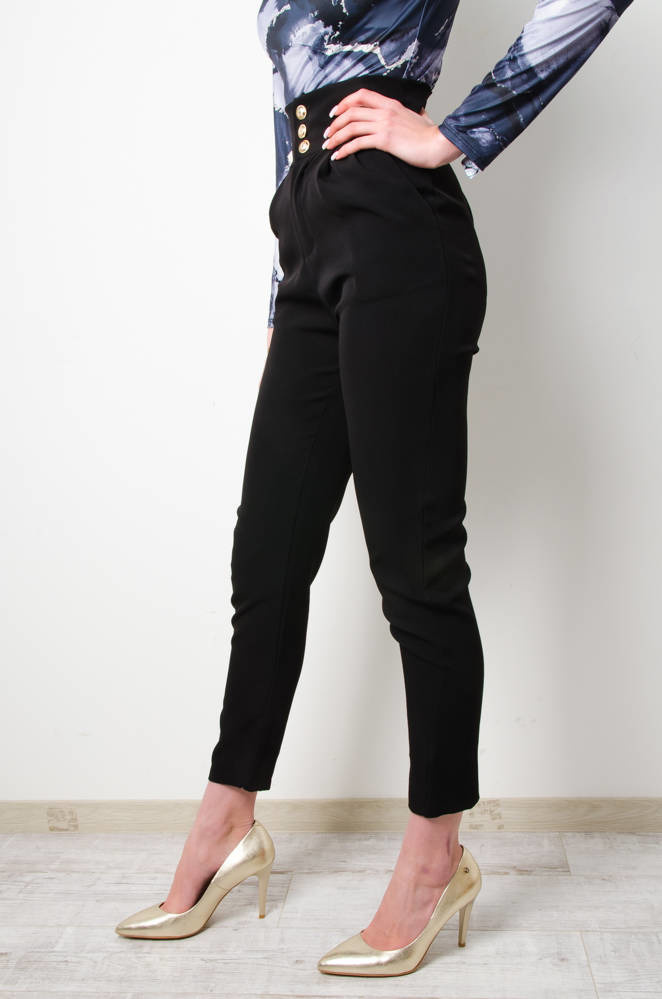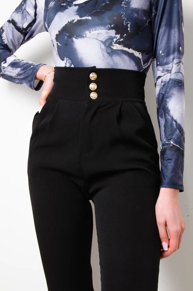 SPODNIE MATERIAŁOWE ZE ZŁOTYMI GUZIKAMI- CZARNE