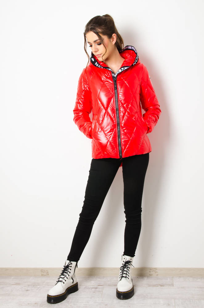 KURTKA WIOSENNA PIKOWANA Z KAPTUREM - CZERWONA
