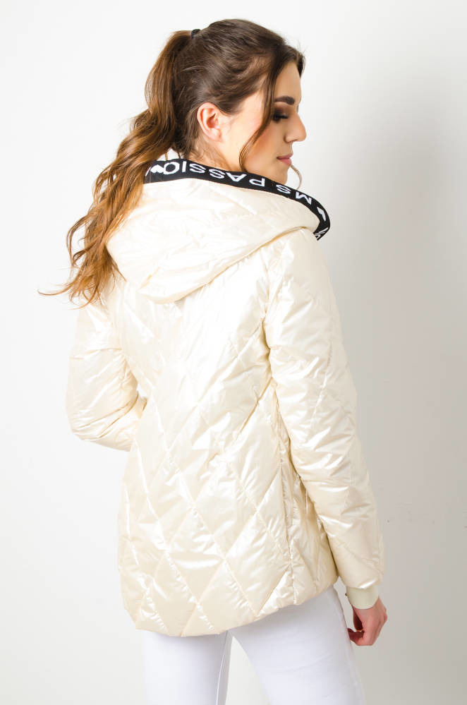 KURTKA WIOSENNA PIKOWANA Z KAPTUREM - EKRI