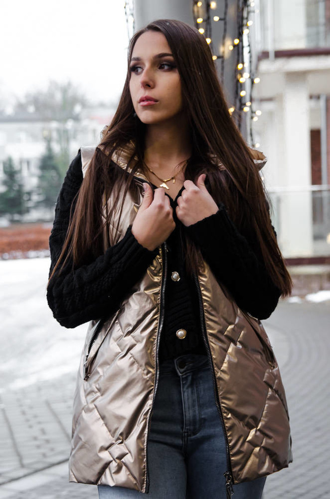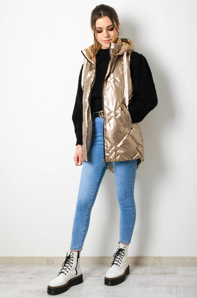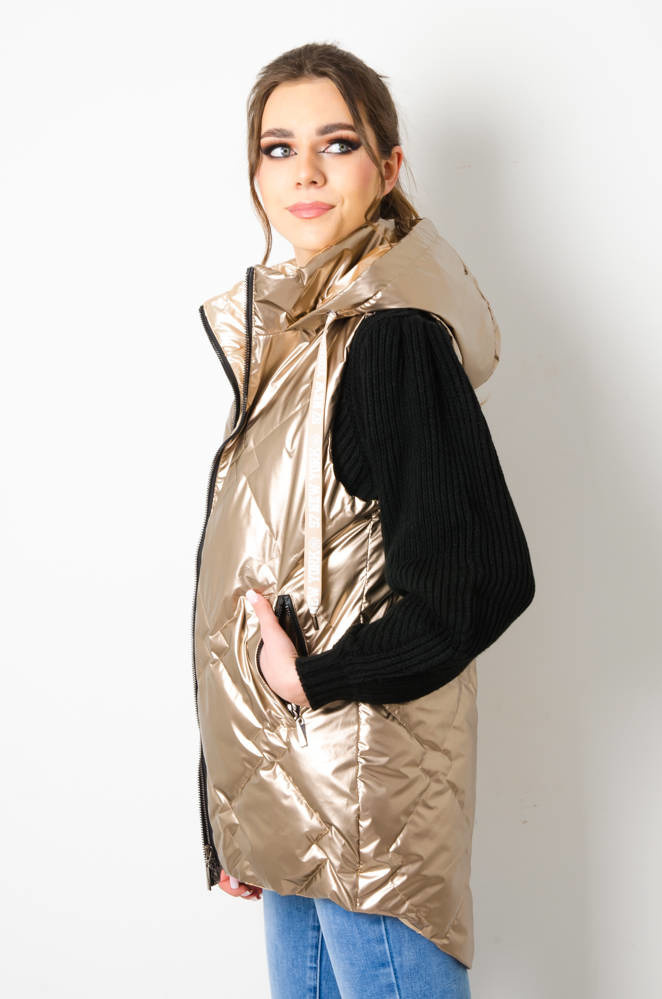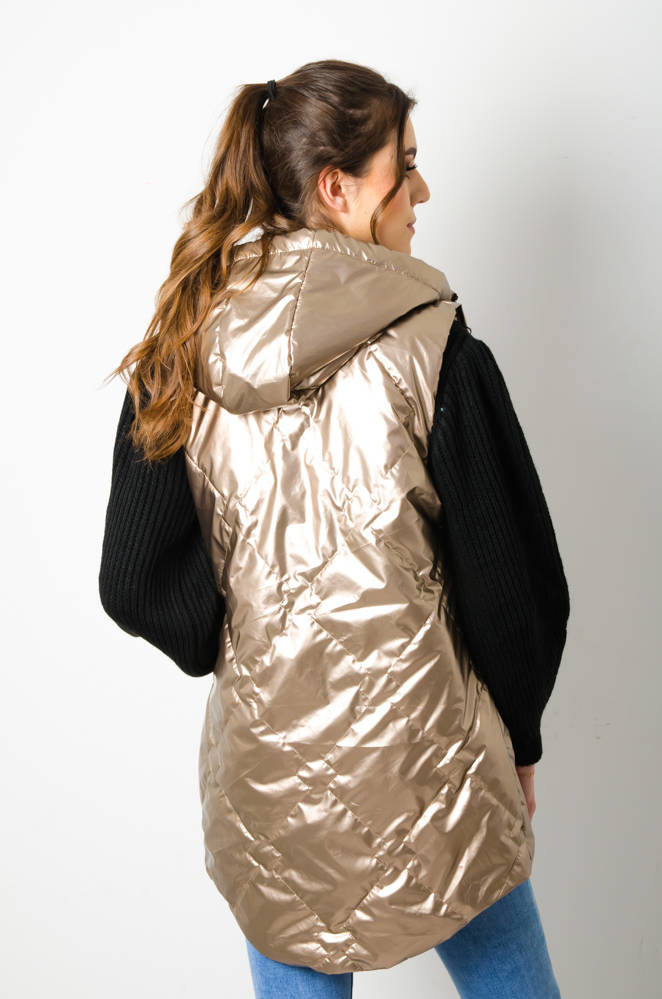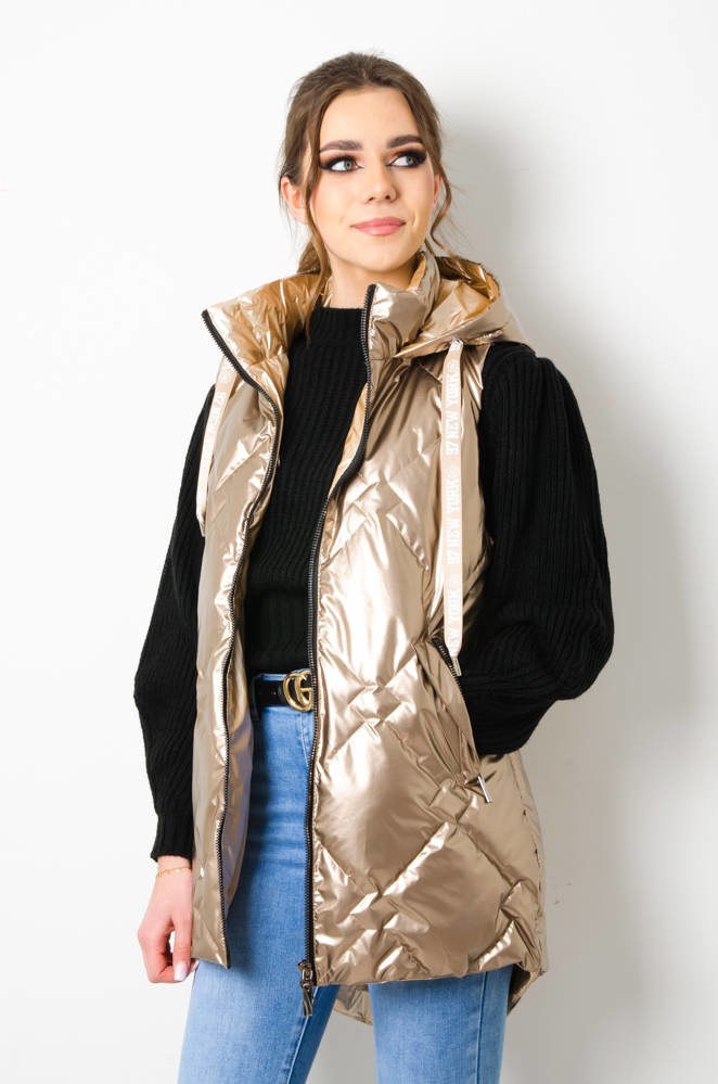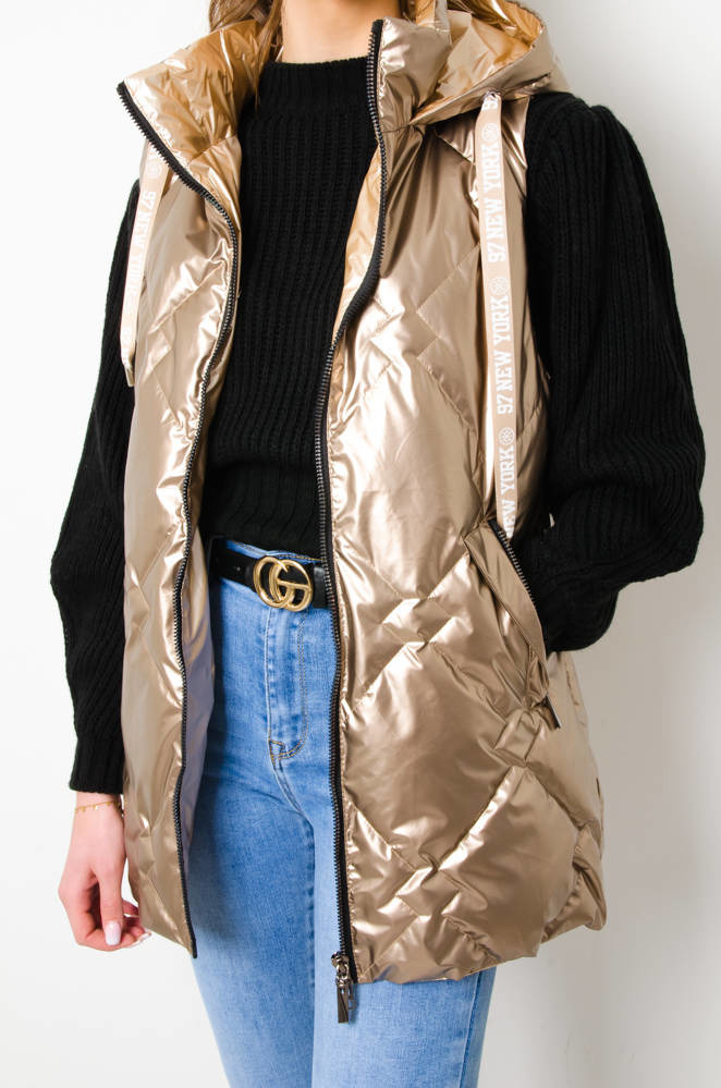 KAMIZELKA PIKOWANA Z KAPTUREM - ZŁOTA