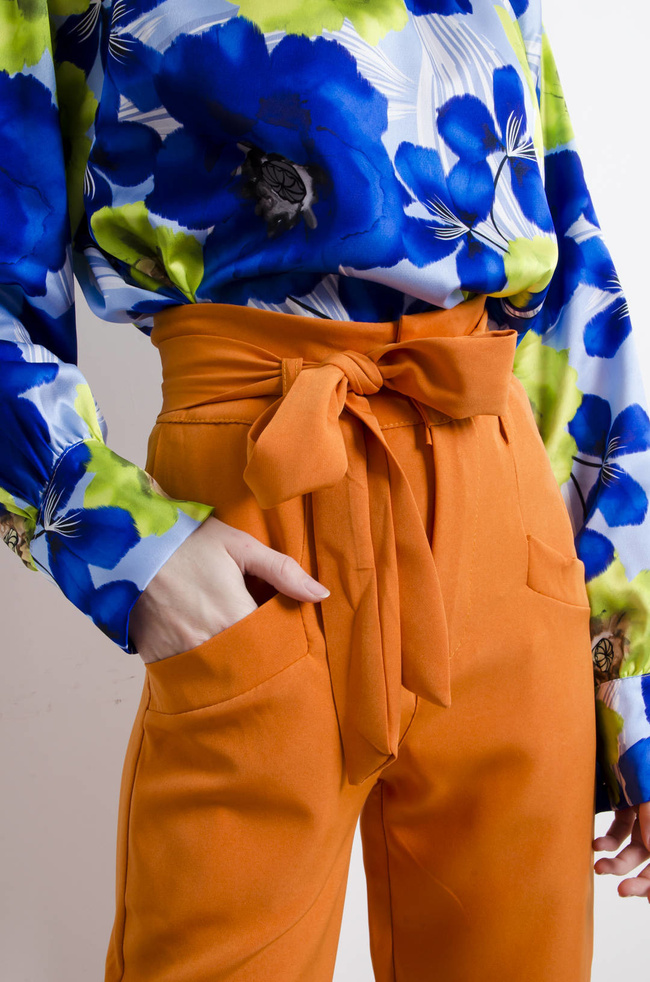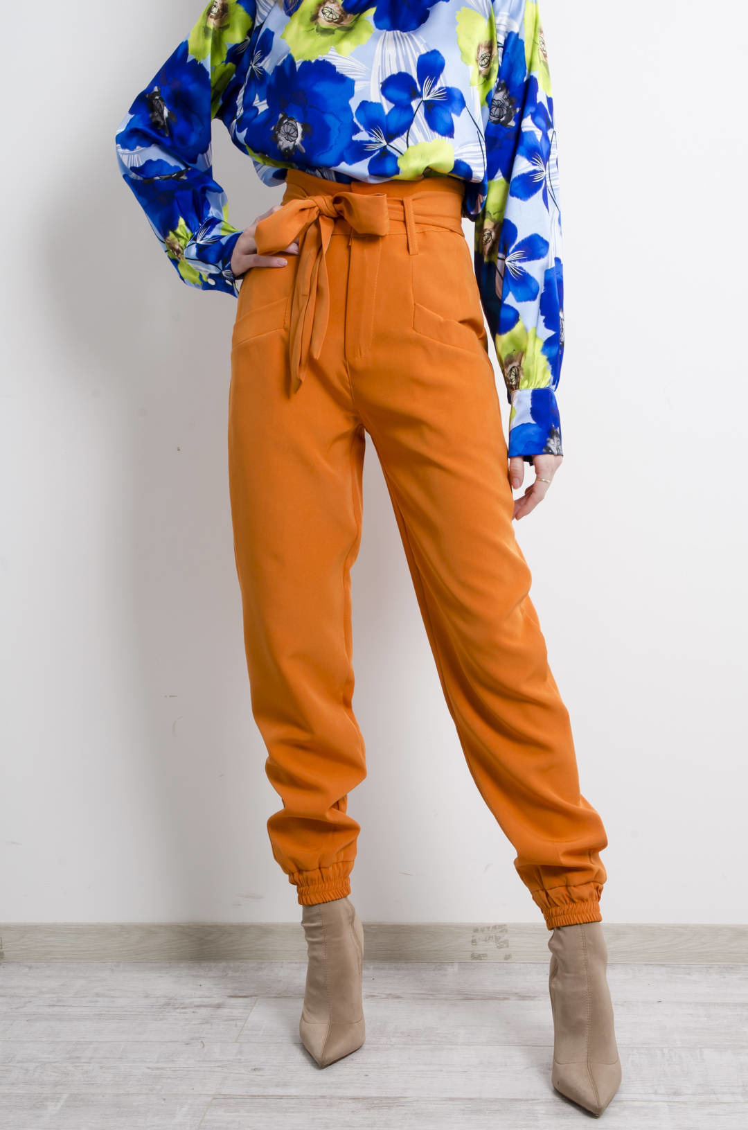 SPODNIE MATERIAŁOWE ZE ŚCIĄGACZAMI I WIĄZANIEM- POMARAŃCZOWE