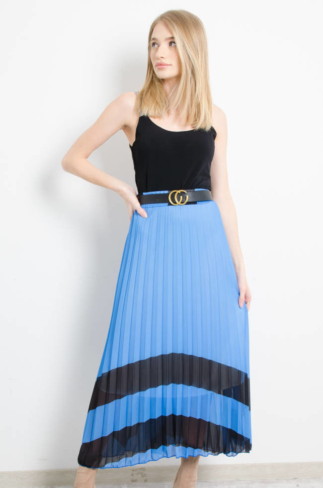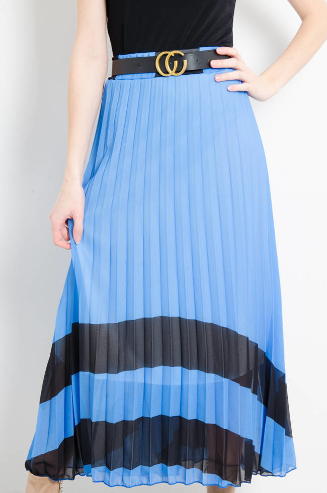 SPÓDNICA PLISOWANA Z PASKIEM - GRANATOWA