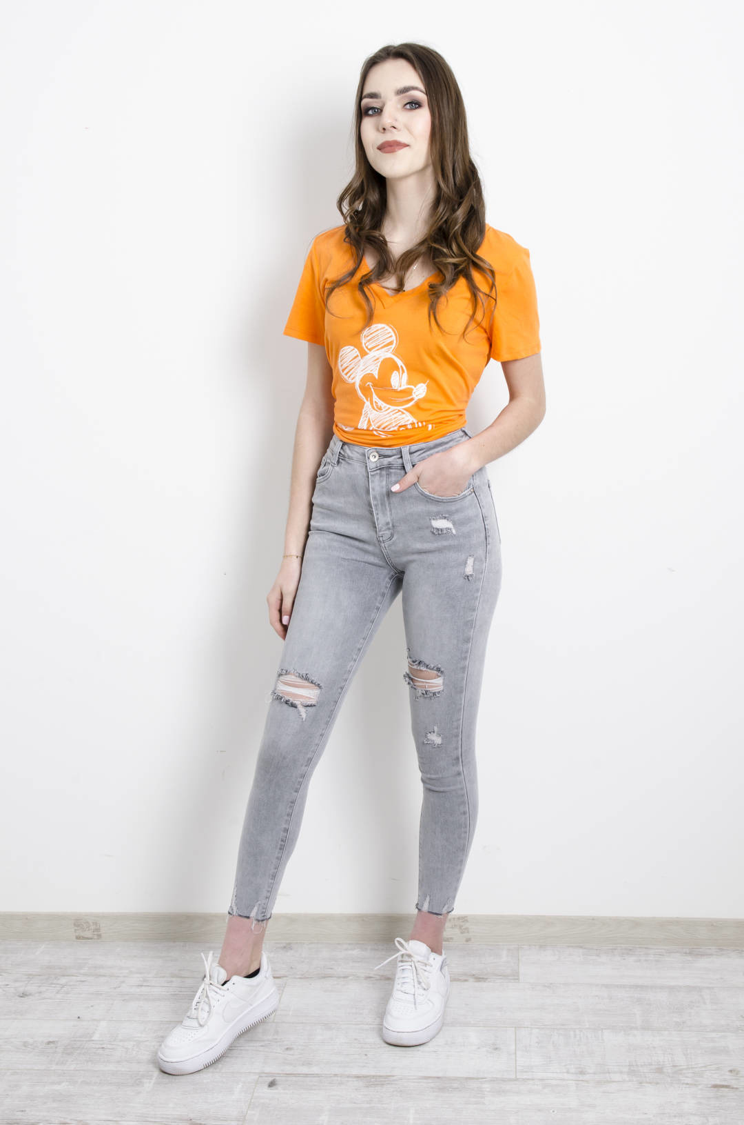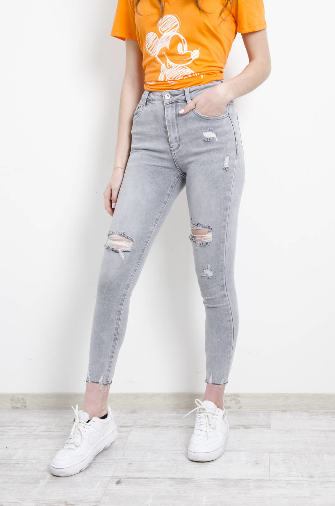 SPODNIE SZARE JEANSOWE Z WYSOKIM STANEM
