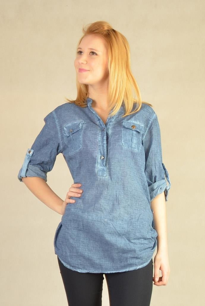 Bluzka koszulowa, zwiewna, prosta i bardzo kobieca. Posiada rozcięcie przy dekolcie i dwie kieszonki na klatce piersiowej, które dodatkowo dodają jej uroku.