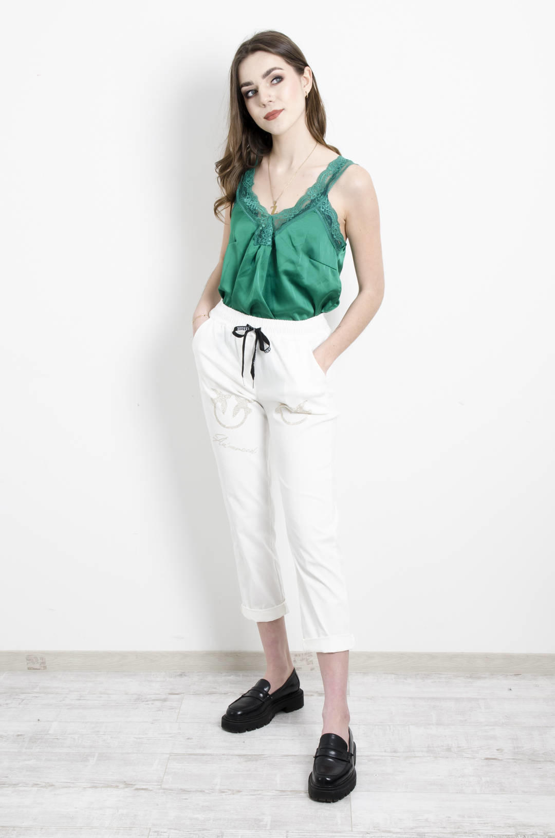 SATYNOWY TOP NA RAMIACZKACH WYKOŃCZONY KORONKĄ