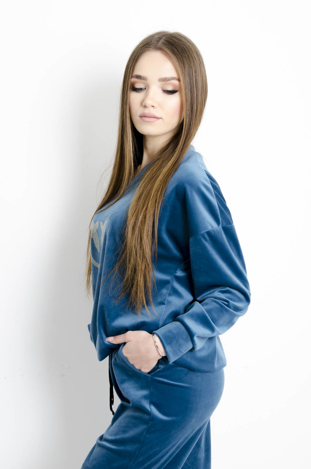KOMPLET DRESOWY WELUROWY TURKUSOWY