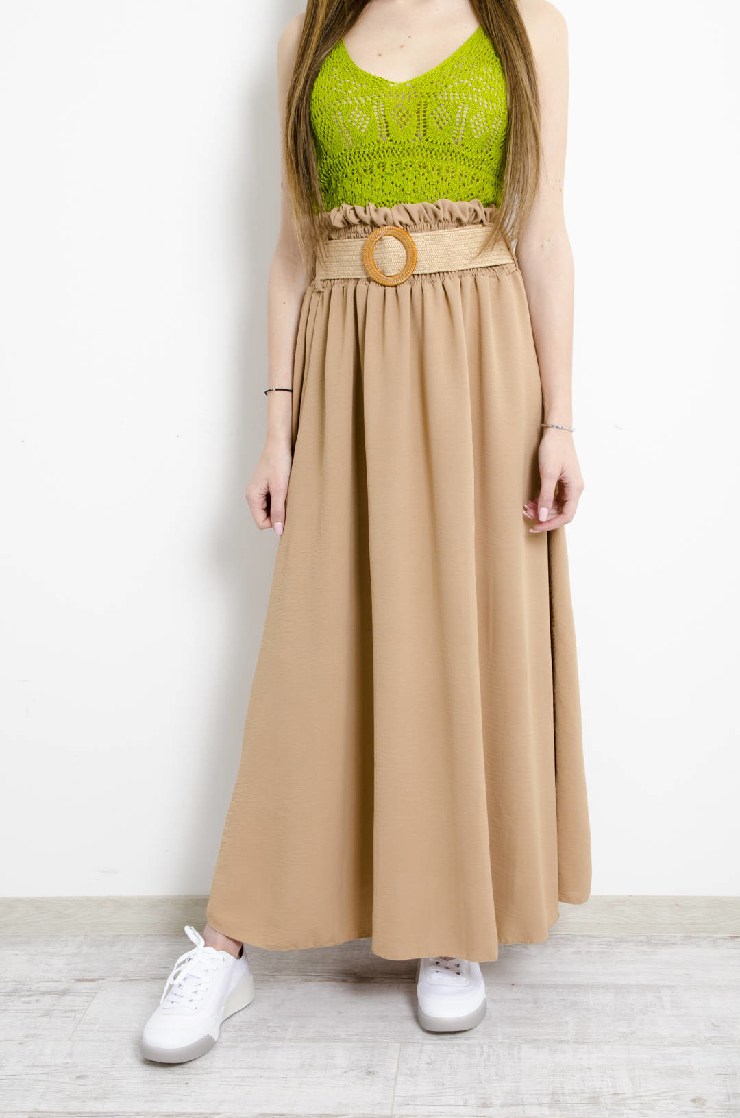 SPÓDNICA MAXI Z GUMĄ + PASEK BRĄZOWA