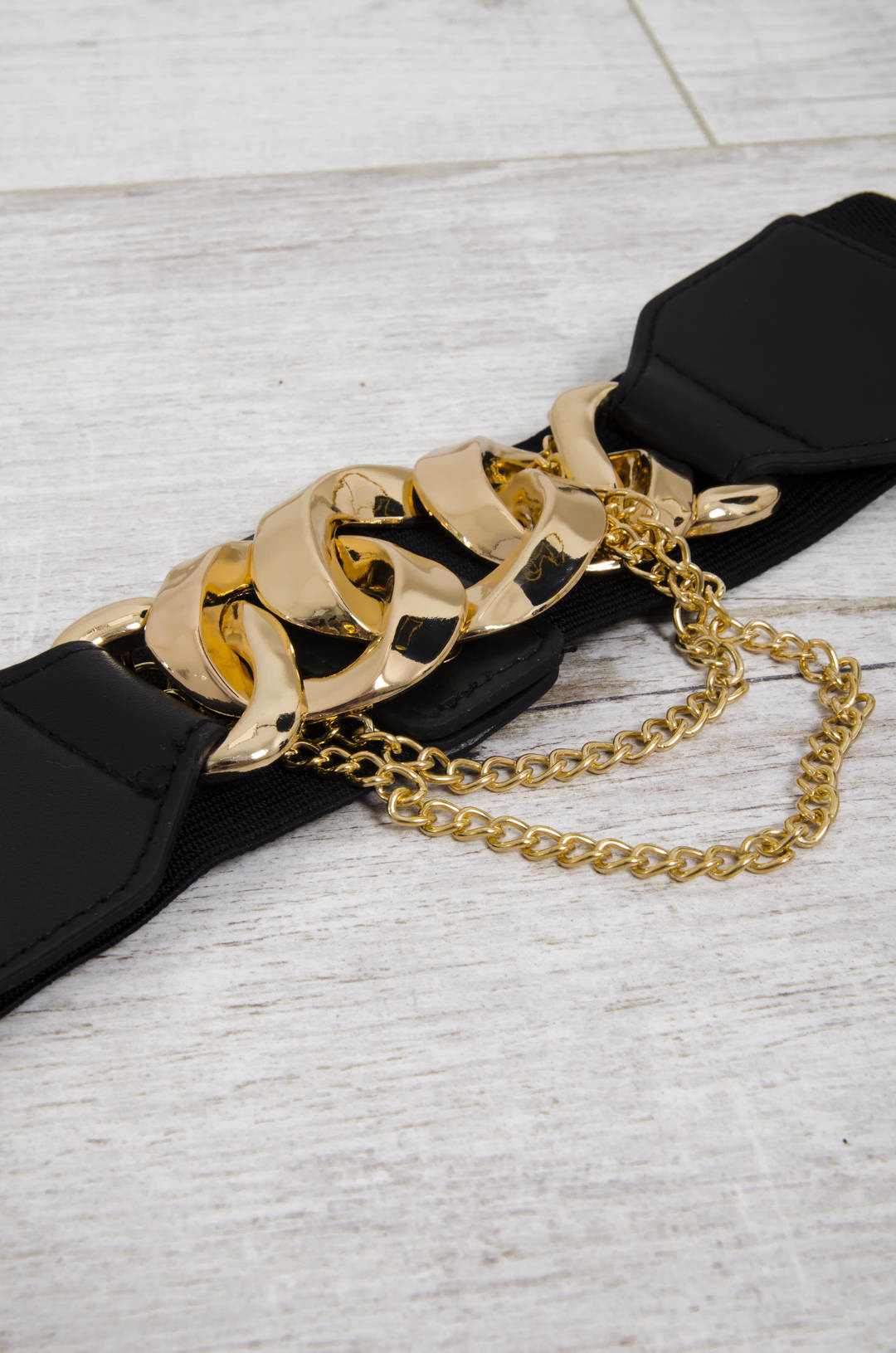 PASEK CZARNY NA GUMIE Z ŁAŃCUCHEM