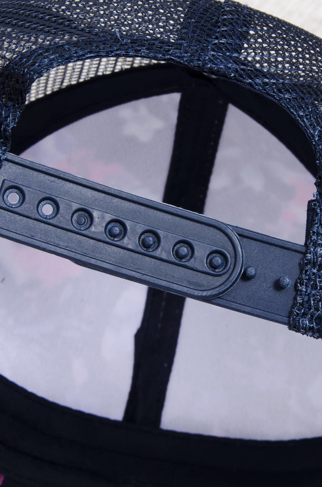 CZAPKA Z DASZKIEM W KWIATY- GRANATOWA