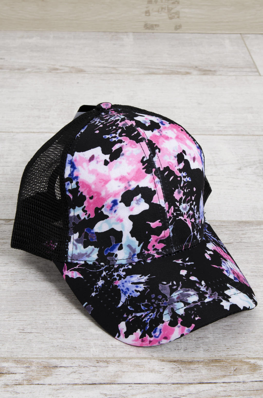 CZAPKA Z DASZKIEM W KWIATY- CZARNA