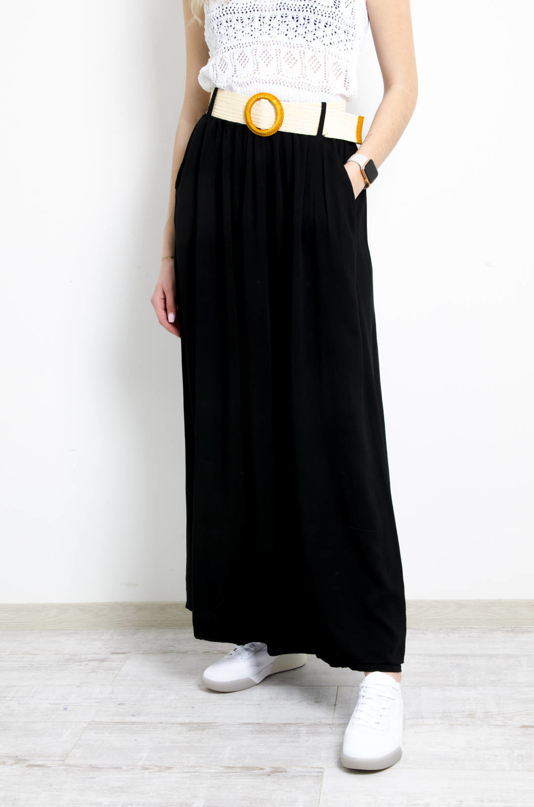 SPÓDNICA MAXI Z KIESZENIAMI I PLECIONYM PASKIEM- CZARNA