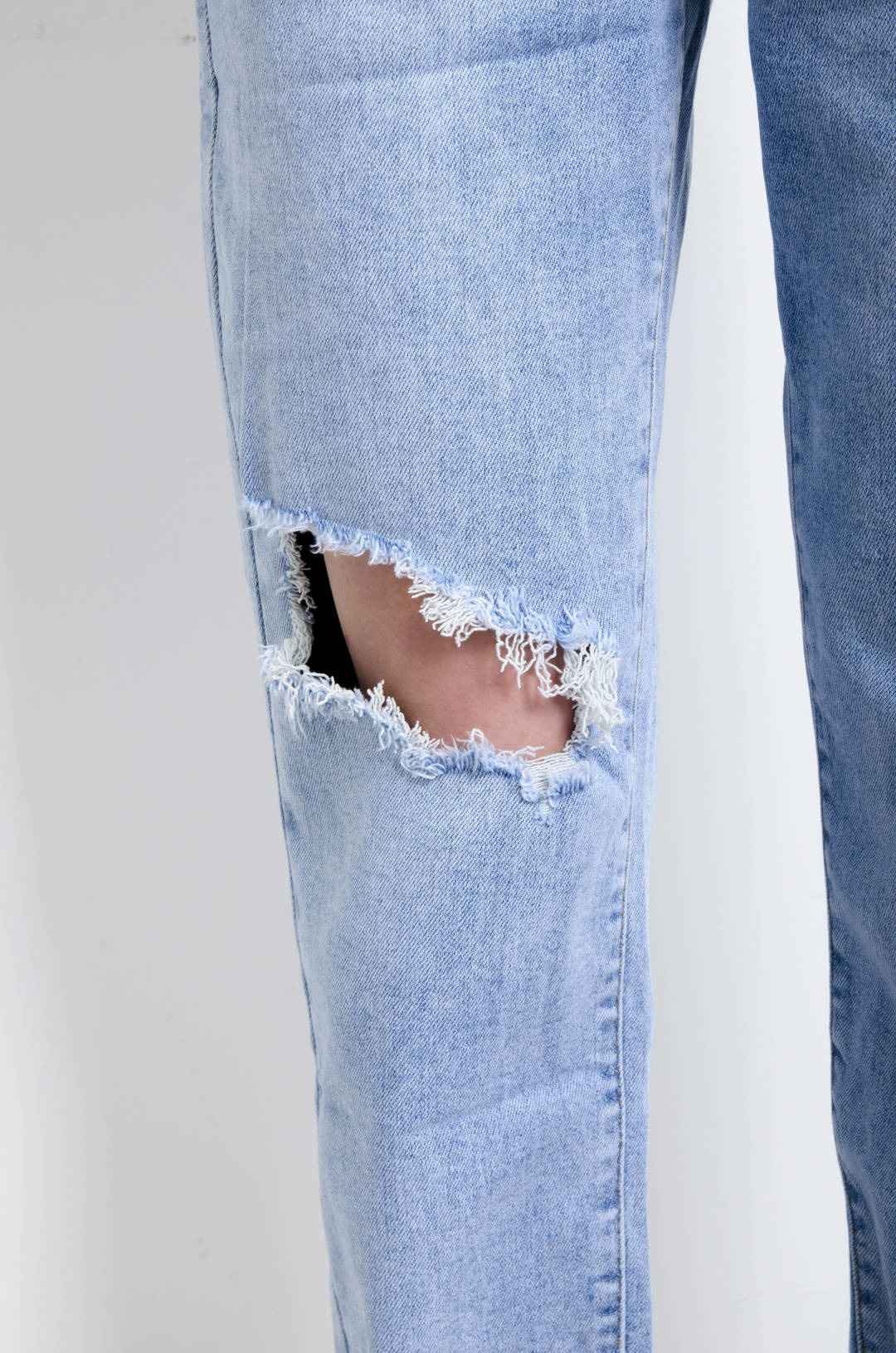 SPODNIE JEANSOWE MOM FIT Z ROZCIĘCIEM NA KOLANIE